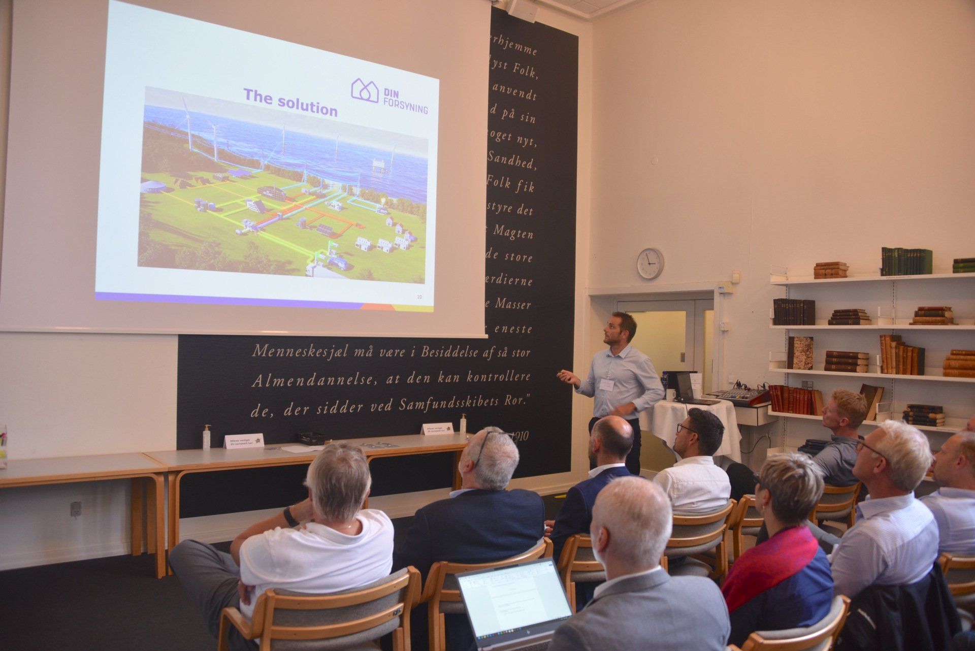 Inden netværksmødet sluttede med en round table diskussion, fik salen en præsentation fra Henrik Blicher fra det lokale Din Forsyning, der dækker både Varde og Esbjerg. Selskabet arbejder i sin nye varmeplan med spændende ambitioner om bl.a. at tilbyde et kølesystem til datacentre, hvor varmen udnyttes til fjernvarme eller alternativt bortkøles med havvand.